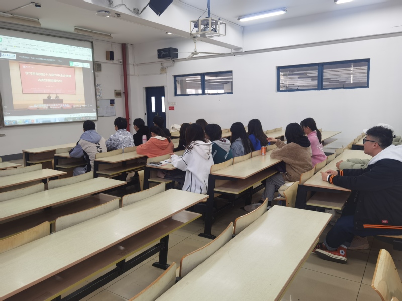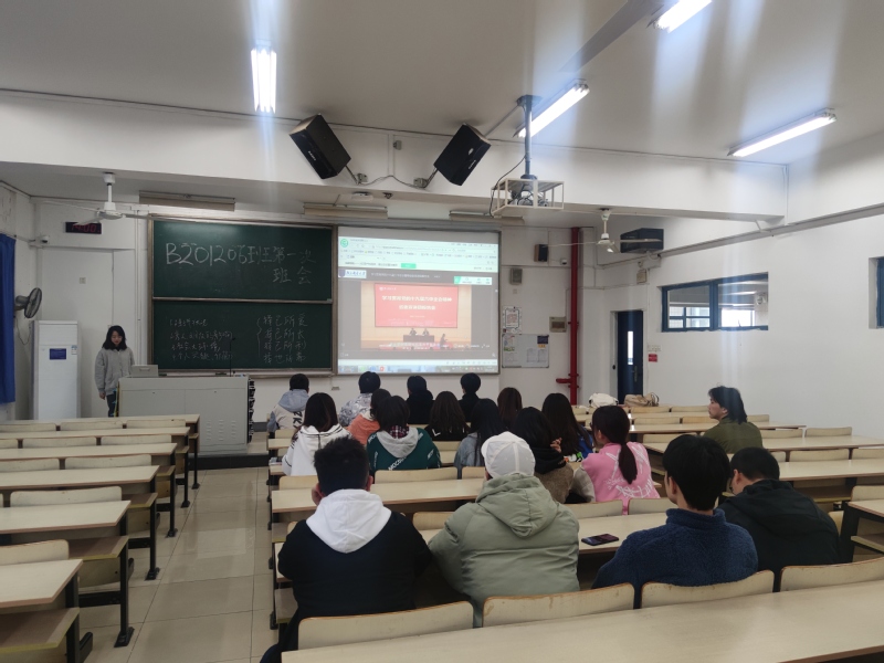 2021年12月8日下午,经济学院B201206班在教2-205教室集中观看学习贯彻党的十九届六中全会精神省委宣讲团报告会视频直播。班会由班长骆怡主持。