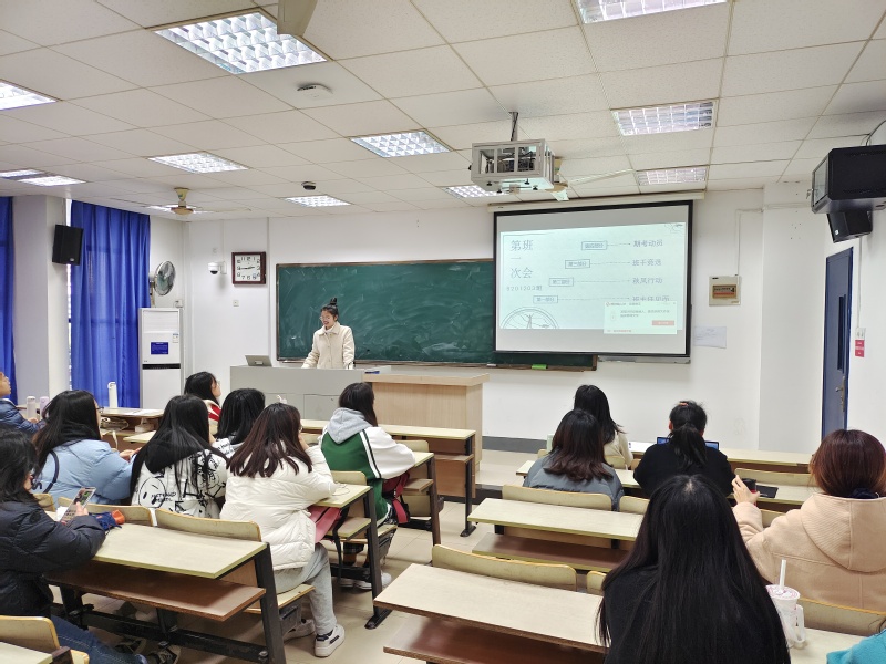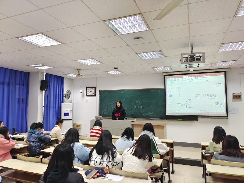 其次,学习委员王文琪同学针对期末考试安排及如何复习分享经验。她指出:“期末考试要依据各科考试时间合理安排复习计划,在期考前可以将自己疑惑的问题统一记录下来,积极、大胆询问老师或同学。”
