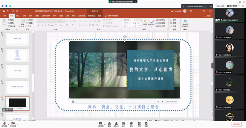 为帮助新生更快适应研究生生活,普及心理健康知识,增强心理调适能力,2021年9月27日,经济学院通过腾讯会议开展了2021级研究生新生心理健康教育活动。