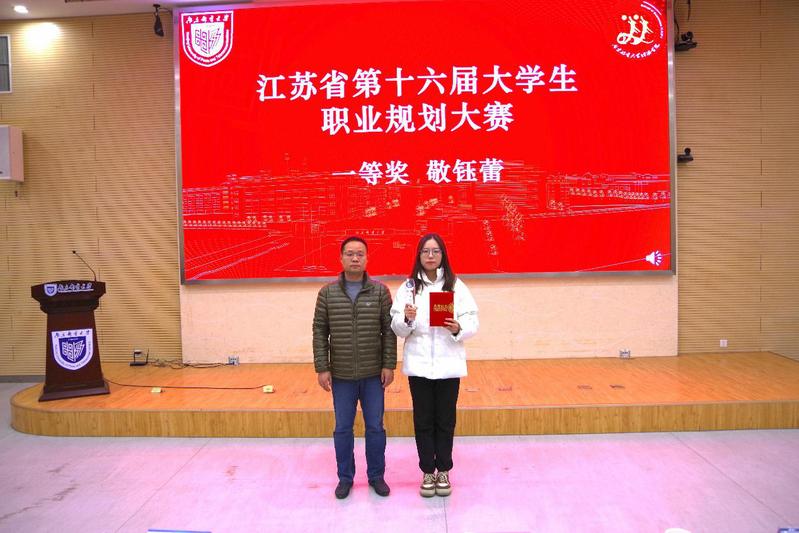 学院副院长杨小军为江苏省第十六届大学生职业规划大赛获奖者颁奖
