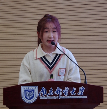 作为新生代表,叶芊甸同学结合大一上学期的体验,向全体21级学生提出号召:走出舒适圈,勇于挑战自己;抓住机会,展示自己;把握当下,向优秀同学看齐。她期待与同学们共同努力,为成就更优秀的自己,为学院、学校、国家的建设一起奋勇向前。