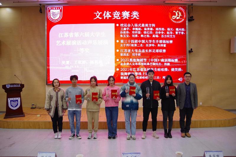 颁奖部分则从获奖代表精心制作的视频开始,随着各类奖项名单的宣布,关工委老师、学院领导、教师代表依次为昭苗奖学金、泽稷奖学金、国家奖学金、第七届中国国际互联网+大学生创新创业大赛国赛银奖及铜奖、全国大学生艺术展演合唱组一等奖、美国大学生数学建模竞赛一等奖、“挑战杯”课外学术科技作品竞赛江苏省特等奖、江苏省大学生就业创业十大年度人物、江苏省大学生职业规划大赛一等奖、龙狮团奖项、校“创新杯”大学生课外学术科技作品竞赛“优胜杯”、运动会入场式最美方阵等奖项获奖代表颁奖。