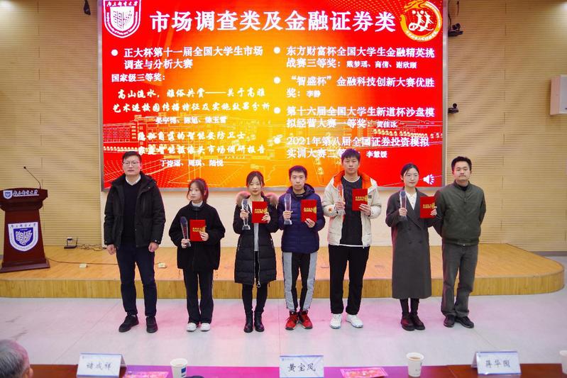 班主任傅步奔、张润驰为市场调研类及金融证券类竞赛获奖者颁奖