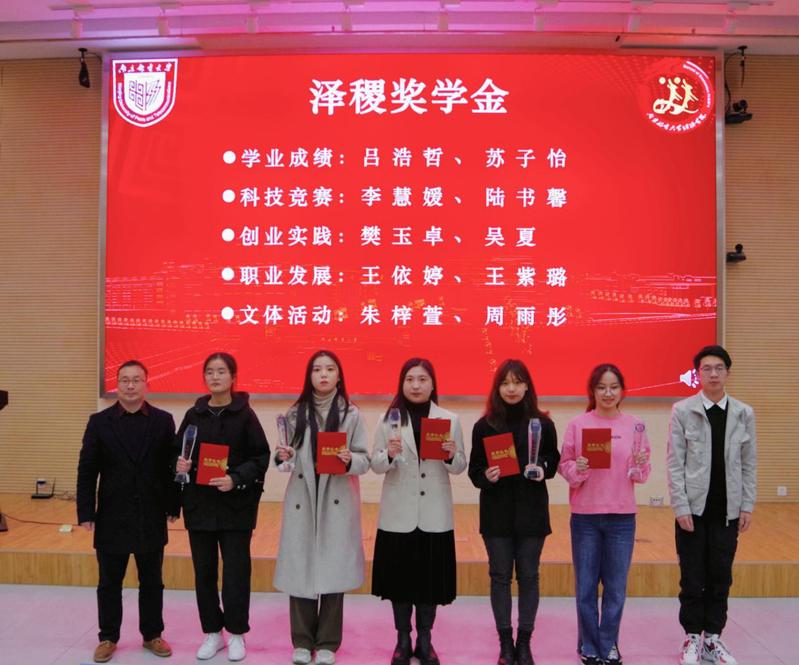 学院院长岳中刚、泽稷教育培训有限公司市场经理 毛勇博为泽稷奖学金颁奖