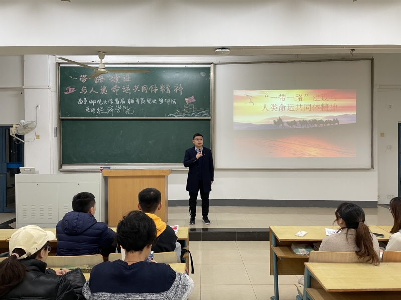 为提高学生思想认识,学习好党史,从党史中汲取前进力量,2021年11月28日,南京邮电大学首届辅导员党史宣讲团走进经济学院,李一鸣老师经济学院100余名学生党员、积极分子为开展了《“一带一路”建设与人类命运共同体精神》专题党课宣讲。