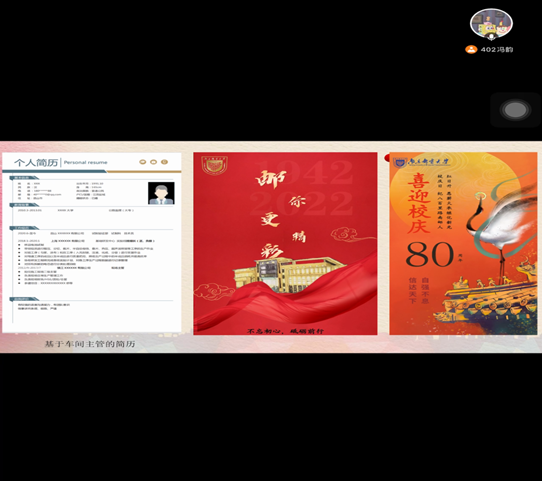 活动伊始,冯韵同学为同学们讲解了学校举办的新媒体设计大赛的宗旨和内容——用PPT、海报等形式进行宣传,讲述党的百年发展历程、新时代青年奋斗史等,表明峥嵘过去已经彪炳史册,璀璨当下正在不断延伸,光明未来需要踏实开拓。此前,B211204班同学踊跃报名,积极参赛,张永明同学设计的基于车间主管的简历、李季东同学制作的校庆主题海报在比赛中获得了不错的成绩。在展示过程中,同学们感触颇深,深受鼓舞,青年奋斗之志熊熊燃烧。最后,冯韵同学带领大家一同重温入团誓词,帮助同学们进一步坚定理想信念,不忘爱国初心,确实做到坚定不移听党话,跟党走。