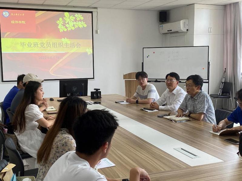 为教育引导毕业生党员进一步增强党员意识、提高党性修养,在各自的岗位上继续发挥党员的先锋模范作用,2022年6月14日下午,经济学院本科学生党支部召开了2022届毕业班党员组织生活会。学院党委书记黄宝凤、党委副书记兼副院长董军、本科学生党支部书记尤波出席了本次会议,全体本科毕业班党员参会。