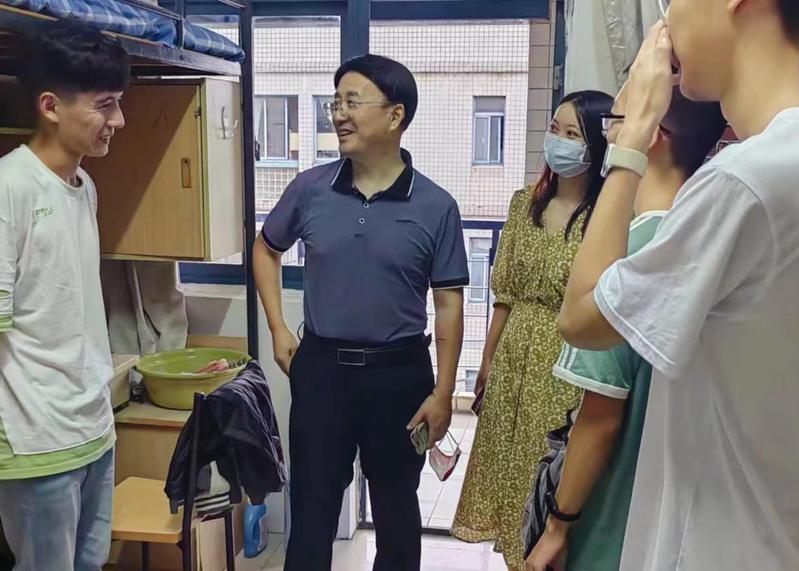 董书记和学生们进行了亲切交流,耐心询问宿舍生活问题,叮嘱学生们注意保持宿舍整洁,着重强调了学习、作息以及人际交往等方面的问题,鼓励学生们坚持劳逸结合,锻炼身体,嘱咐学生们有困难和问题及时向老师和辅导员咨询,殷切地期望学生们尽快融入班级,尽快适应大学生活。董书记也提醒学生们在疫情期间要切实做好自我防护工作,鼓励大家积极面对大学生活,树立奋斗目标,保持良好生活与学习习惯,做好规划,求真务实。