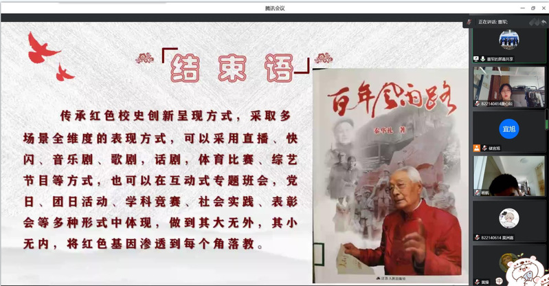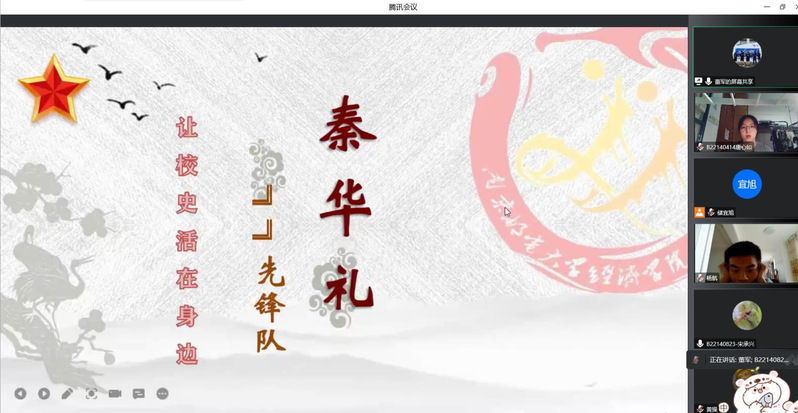 首先,董老师详细介绍了由文化小队,科创小队,菁英小队组成的“秦华礼战邮先锋队”。百岁老红军,半部南邮史,通过秦老传奇的一生,讲述了我校从1942年抗日烽火时期的八路军战邮干训班到如今成功入选国家双一流建设高校和江苏省高水平大学的80年历史。最后,董老师又介绍了学校龙狮团,科创小队等获得的各种省级或国家级奖项,以弘扬红色校史文化。