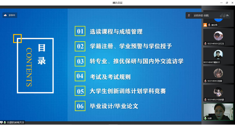 为增强经济学院2022级新生对学校学籍管理政策的理解,2022年9月16日晚上,经济学院2022级举行了学籍宣讲。会议邀请教务处田甜老师进行宣讲,由2022级经济学院辅导员储宜旭老师主持,2022级全体新生线上参加会议。
