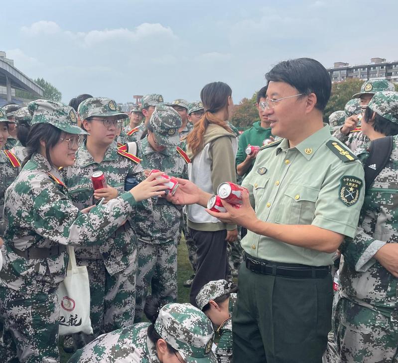 为深入了解2022级军训情况,关怀军训新生,鼓舞军训士气,9月25日下午,经济学院党委副书记、副院长董军前往军训场地,慰问2022级参训学生。