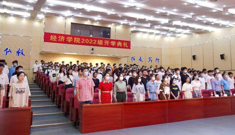 2022年9月30日下午,经济学院2022级研究生、本科生开学典礼在图书馆四楼报告厅举行。经济学院党委书记黄宝凤教授,院长岳中刚教授,副院长王子敏教授,院党委副书记兼副院长董军副教授,经济系系副主任杜运伟老师,经济统计系张雅淋老师,国际经济与贸易系系主任张昌兵教授,金融系傅步奔老师,及2022级本科生、研究生辅导员出席了本次典礼,典礼由我院董军副书记主持。