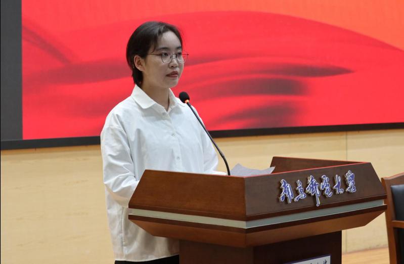 2020级院学生会主席刘蓓同学作为学生代表为新生全面解答了如何充实度过大学四年,鼓舞大家开拓视野、生活多样化、勇于创新。应用统计专业周琪同学作为2022级研究生新生代表发言,号召22级新生们要保持初心,坚定理想信念,志存高远,用求知若渴的态度去迎接二十大,开启新的征程。2022级本科生新生代表金融工程创新实验班学生邹欣仪同学发言,表达了对未来大学四年生活的向往,表示将与其他新生一起以青春之我创青春之未来,号召大家做有作为有担当的南邮学子。