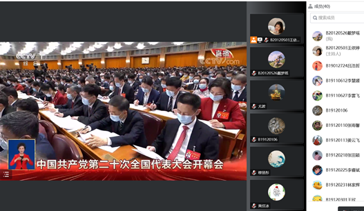 2022年10月16日10时,中国共产党第二十次全国代表大会于北京人民大会堂隆重开幕,南京邮电大学经济学院各团支部、学生会、分团委秘书处、学生社团准时观看本次大会直播,学院团学骨干代表在文科楼523会议室进行集中观看,认真学习习近平总书记代表十九届中央委员会向大会所作的报告并做好学习记录。