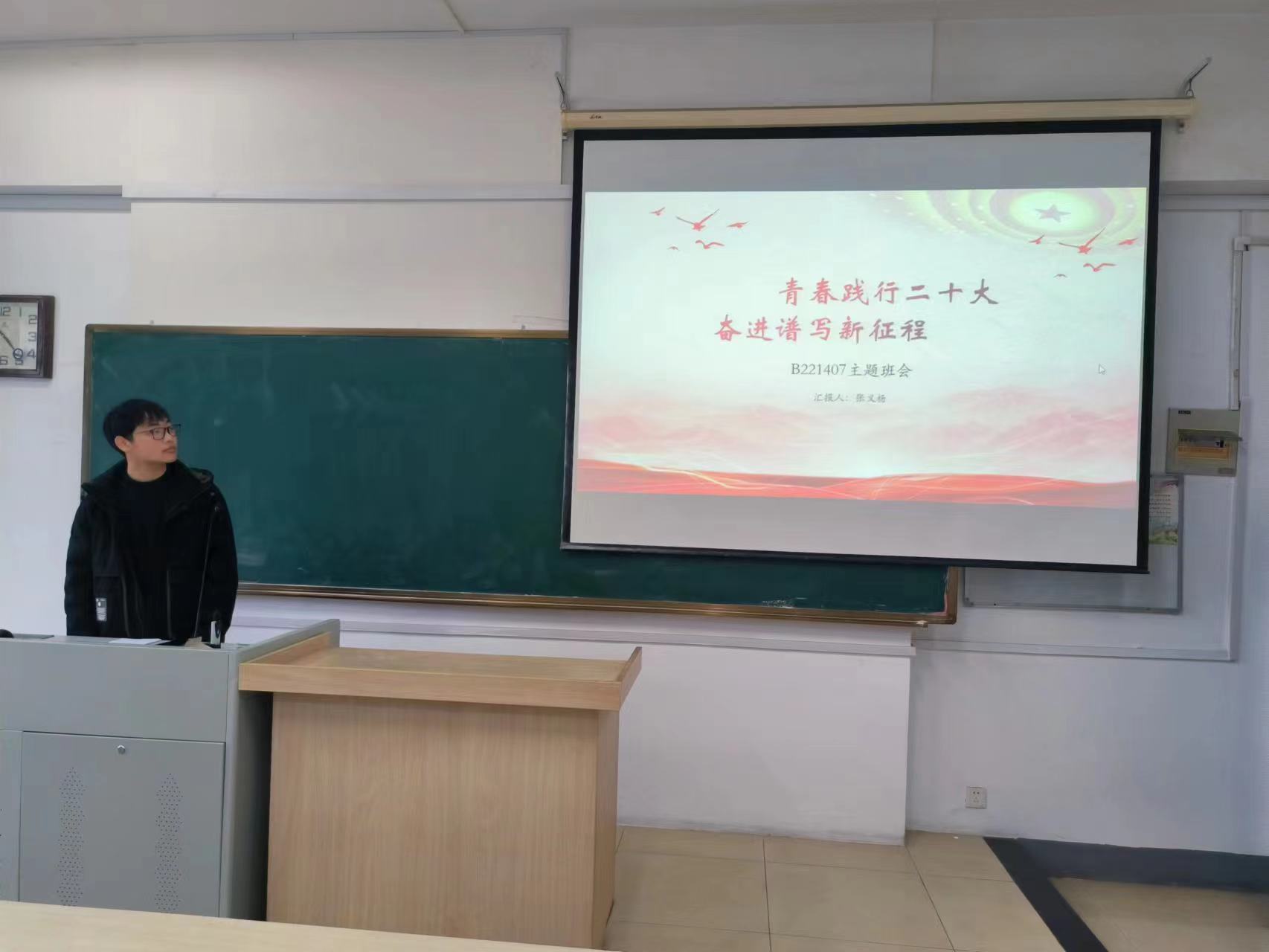 3月23日上午,经济学院B221407班于举行了以“青春践行二十大,奋进谱写新征程”为主题的主题班会。本次班会旨在号召同学们学习践行二十大,培养爱国主义精神,坚定理想信念,遵守法纪法规,在日后的学习和生活中更好地提升自己,实现人生价值。
