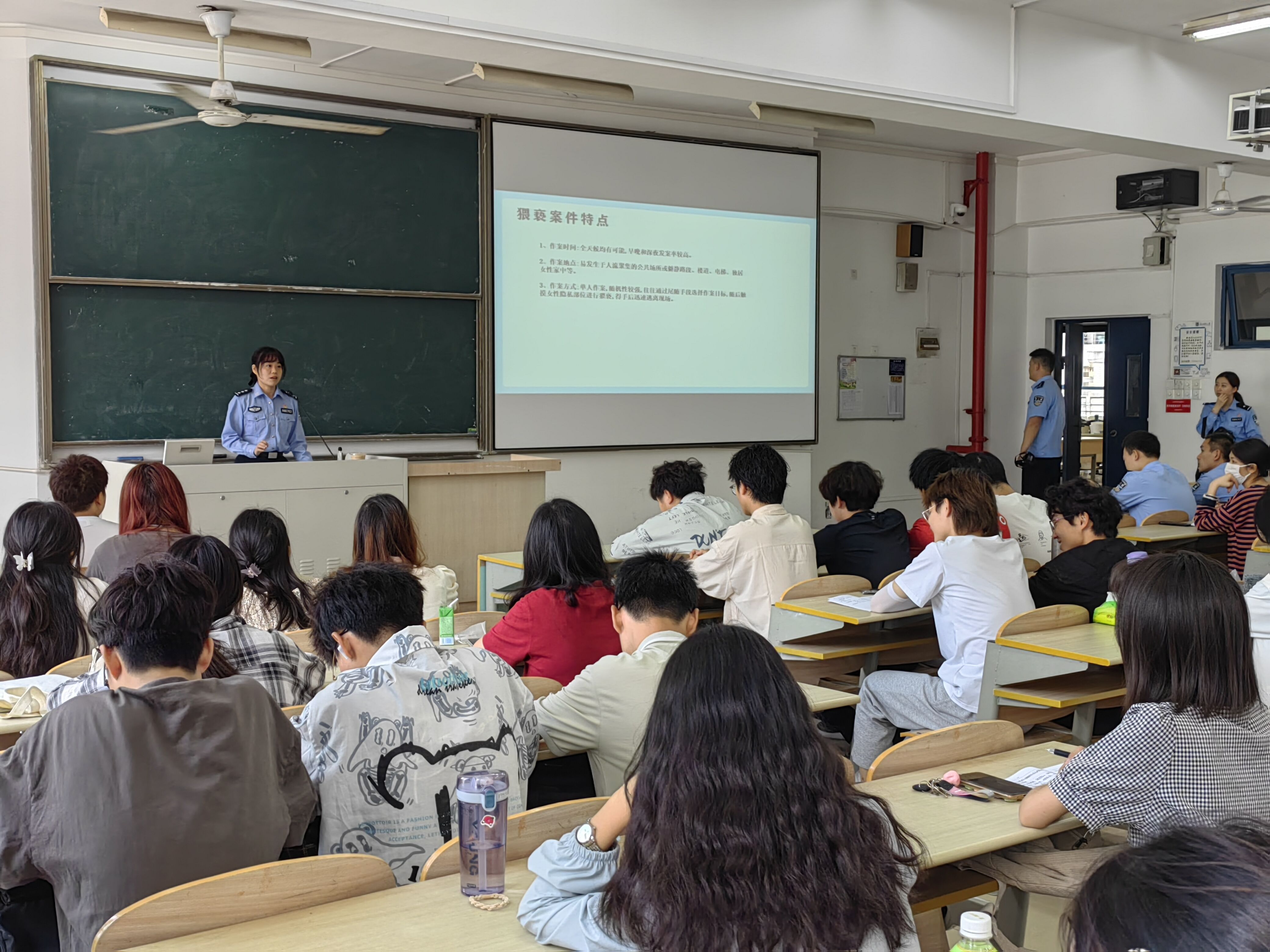2023年5月18日中午,南京邮电大学第一百四十二期菁英人才学校暨经济学院学生骨干培训班第三次授课于仙林校区教3-312顺利举行。本次课程由南京南站派出所三级警长夏倩主讲,课程主题为《加强自我防范,共创平安人生》。