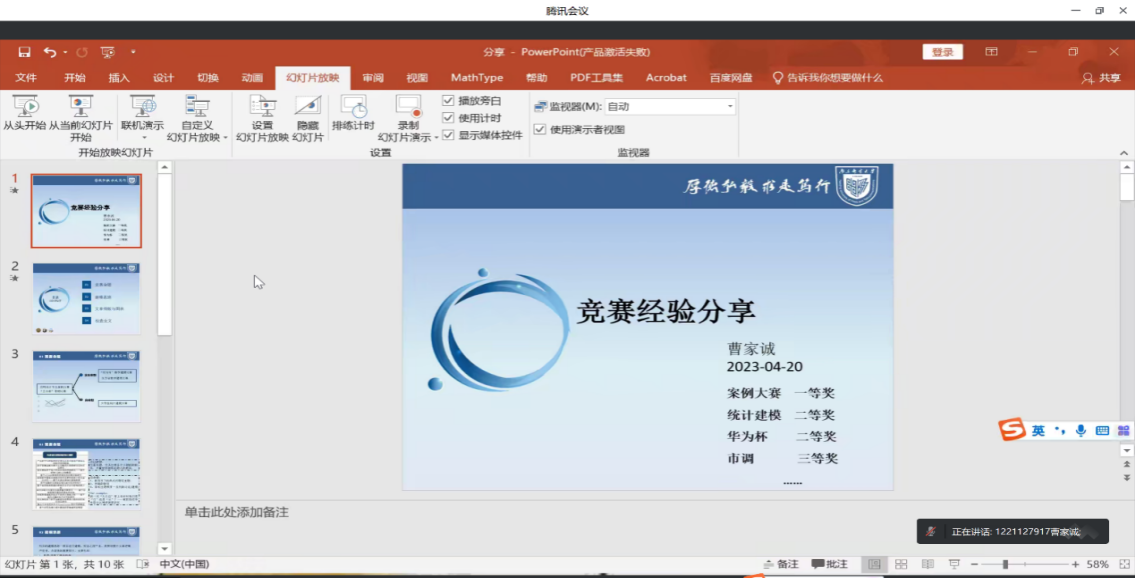 为激发我院研究生的创新活力,增强科研竞赛水平,2023年4月22日晚,经济学院组织开展了“研究生学术创新嘉年华——科创经验分享会”。本次分享会邀请到我院陆书馨、李灵玉、谷成龙、曹家诚四位同学进行科创竞赛方面的经验分享,我院研一研二全体学生参会。
