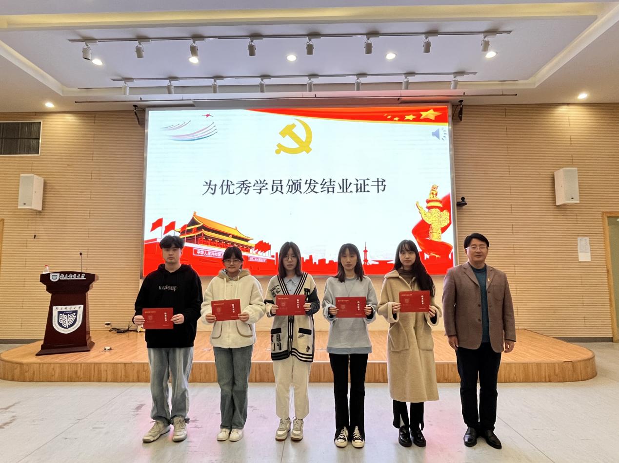 伴随着昂扬的《国际歌》,结业典礼拉开帷幕。培训班优秀学员代表杨星蕊同学发言,她结合自身志愿服务经历强调了守住自我初心的重要性,表示在今后将会努力学习党的创新理论和科学文化知识,以实际行动不断向党组织靠拢。随后,董军书记向顺利结业的培训班学员表示祝贺,勉励大家早日成为习近平总书记提出的“讲政治、有信念,讲规矩、有纪律,讲道德、有品行,讲奉献、有作为”的合格党员,并提出了三点要求:一是要坚定理想信念、端正入党动机;二是要付诸行动、见之于成效;三是要坚持不懈、久久为功。最后,董书记为优秀学员颁发了结业证书。
