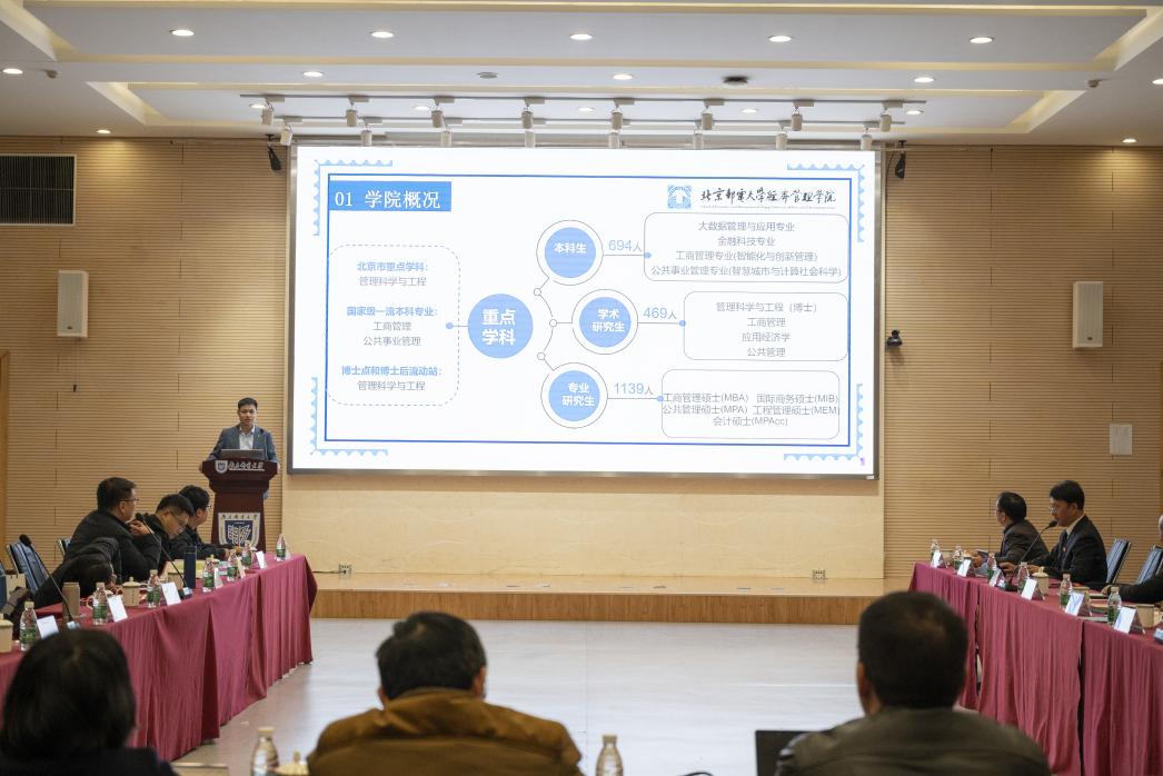岳中刚院长首先从发展历程、师资队伍、学科专业优势和特色方面,介绍了经济学院的发展概况。然后,进一步从课程建设、科学研究、人才培养等方面,详细分析了学院应用经济学一级学科和经济统计学国家一流本科专业建设成效,并就发展中的痛点难点问题和建设规划同与会专家进行了交流和研讨。与此同时,岳中刚院长还分别邀请邮电高校经管学院相关负责人,就学院学科专业发展状况和建设成效进行了交流。