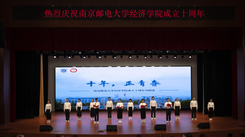 抚今追昔、展望未来,共襄盛举,同谱华章。2023年12月6日下午,南京邮电大学经济学院成立十周年高质量发展大会在仙林校区青春剧场隆重举行。为庆祝经济学院的辉煌十年,激励在校学生向各行各业的杰出校友学习,追求卓越、砥砺向前,经济学院研究生党支部特别策划了题为《十年 正青春》的诗朗诵节目,在高质量发展大会上向学院献礼。