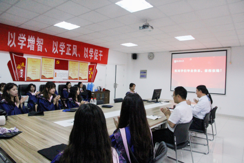 董军书记肯定了同学们三年来的蜕变与成长,对同学们顺利完成学业、即将开启人生新篇章表示衷心祝贺,叮嘱同学们在未来的人生道路上要厚植家国情怀,永葆清廉底色,勇担时代使命,为国家经济建设和社会发展做出自己的贡献。杨小军副院长对毕业生们的建言献策表示感谢,表示学院将会认真研究同学们反映的问题与建议,不断改善学院工作,助力学院建设发展。