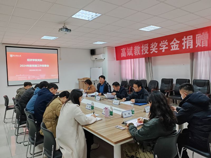 为深入学习贯彻落实党的二十大和二十届二中全会精神,进一步做好经济学院2024年度党建工作,高质量引领学院各项事业发展。2024年3月15日,经济学院党委在文科楼529会议室召开2024年度党建工作部署会。会议由经济学院党委书记董军主持,学院党委委员、各党支部支部书记参加 。