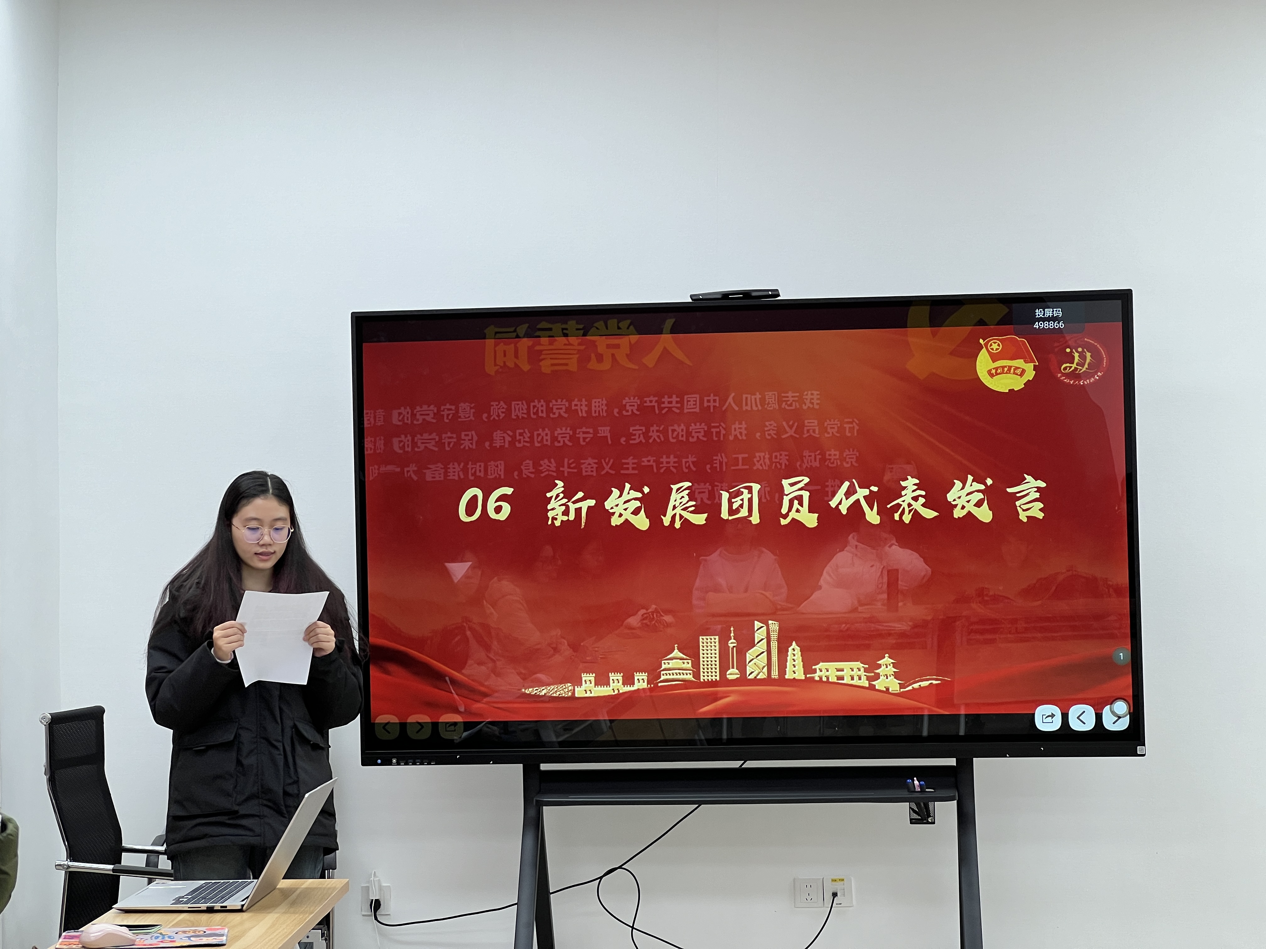 23级本科生朱巧怡同学作为新团员代表上台发言。她表达了自己加入共青团的喜悦之情和对未来成长的期待,并庄严承诺将以老团员为榜样,让行动见证自己的成长,为实现中华民族伟大复兴贡献自己的力量。