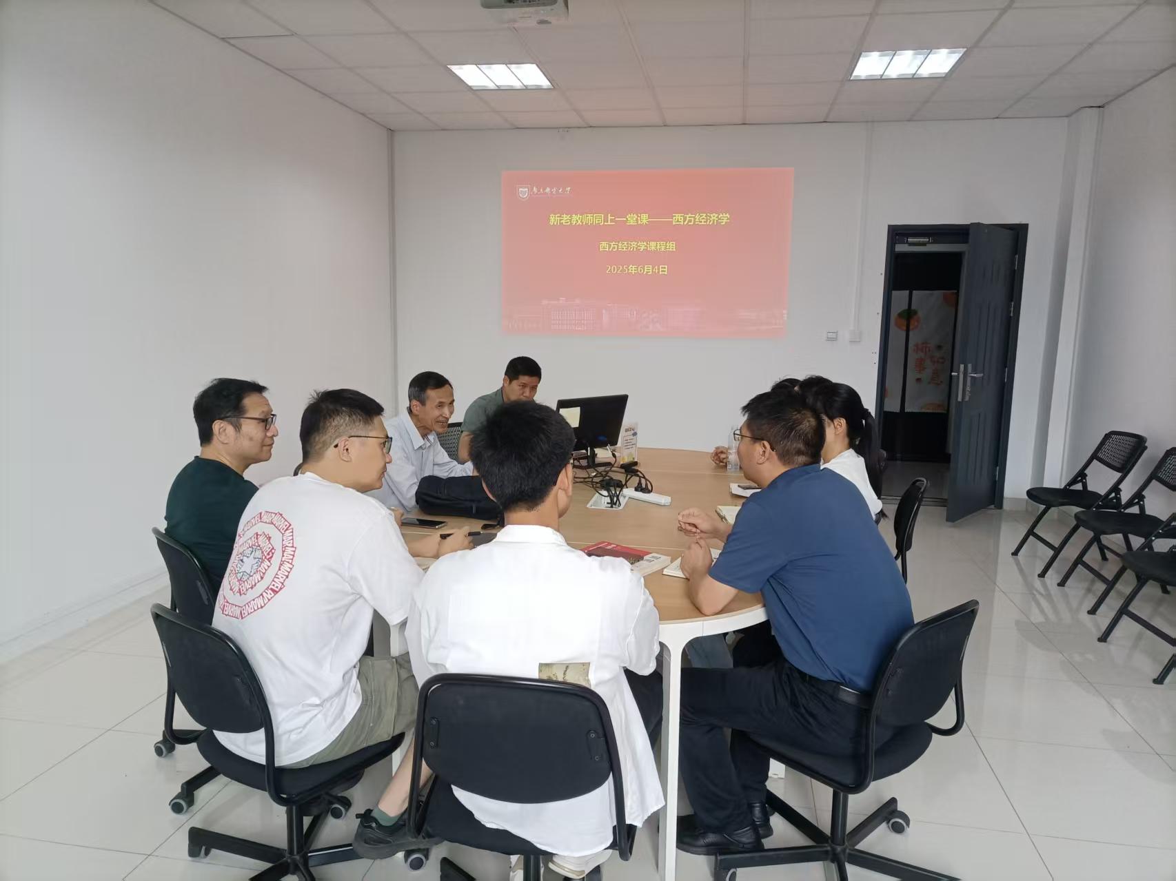 2025年6月4日下午,经济系在文科楼522会议室开展新老两代教师“同上一堂课”活动暨《西方经济学》课程组教学研讨会。经济系《西方经济学》课程组全体任课老师参加会议,经济学院副院长杜运伟出席会议,经济系副主任郑晓奇主持会议。
