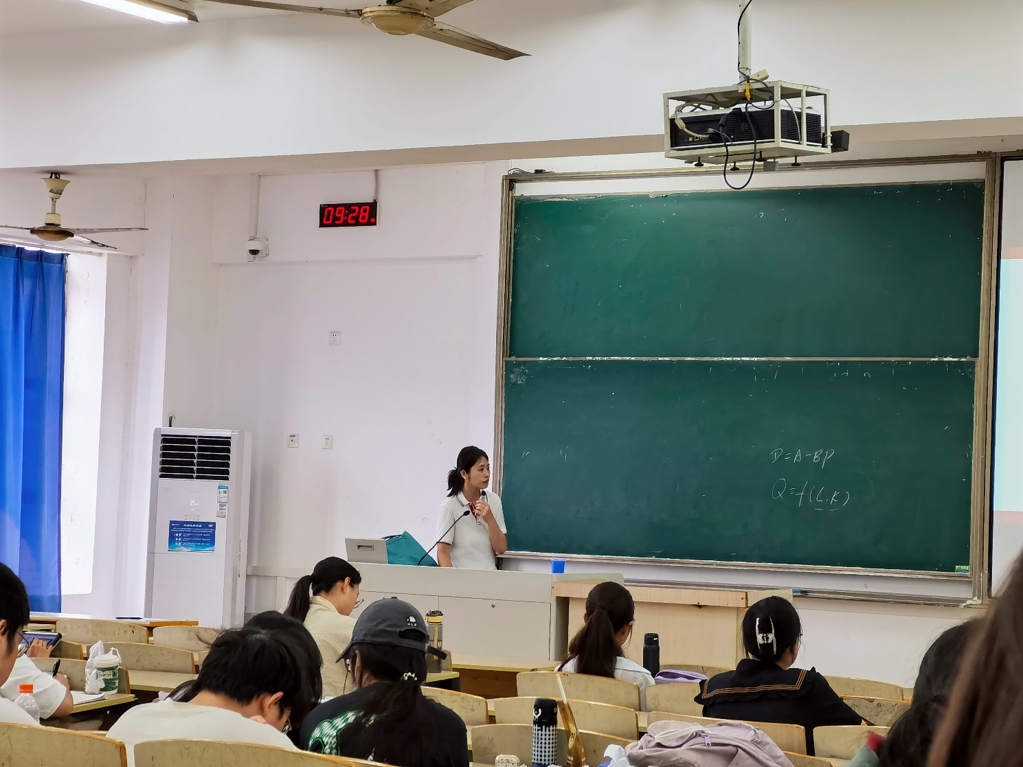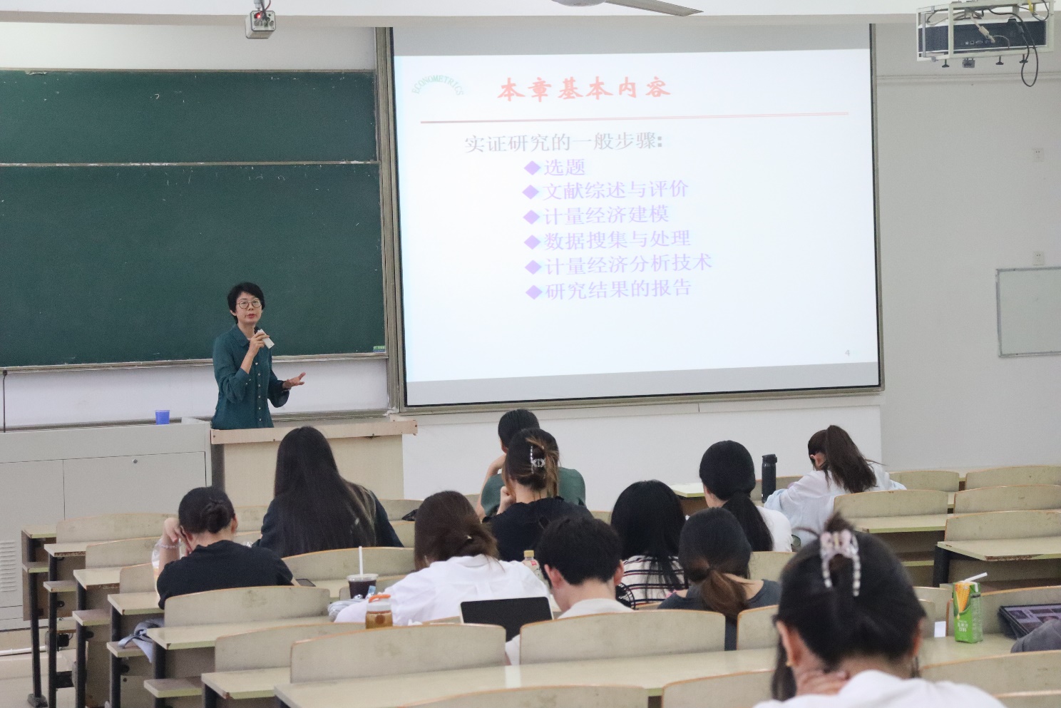 黄犚老师以计量经济学实证研究的操作流程为授课主题,选取宏观经济学中的柯布-道格拉斯生产函数作为切入点,深入剖析实证研究的完整框架与实施步骤。黄犚老师课堂节奏张弛有度,授课深入浅出,不仅追溯理论的学术根源,还紧扣学科前沿动态,将复杂的计量经济学概念与具体模型相结合,使学生能够直观理解理论与实践的衔接。此外,黄犚老师巧妙运用互动式教学方法,引导学生积极参与讨论,激发学术思维,展现了资深教师深厚的专业素养、严谨的治学态度与卓越的教学魅力。