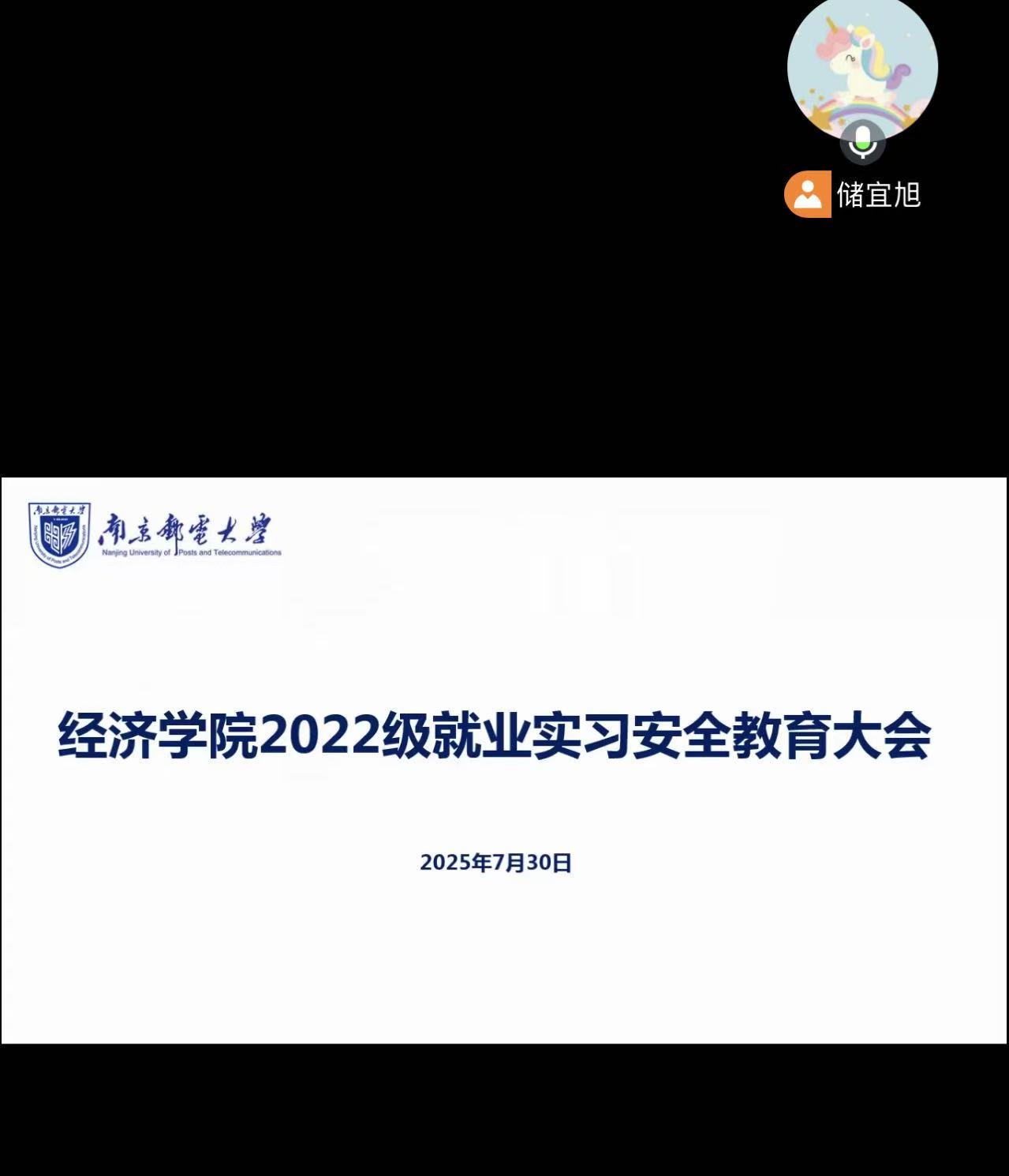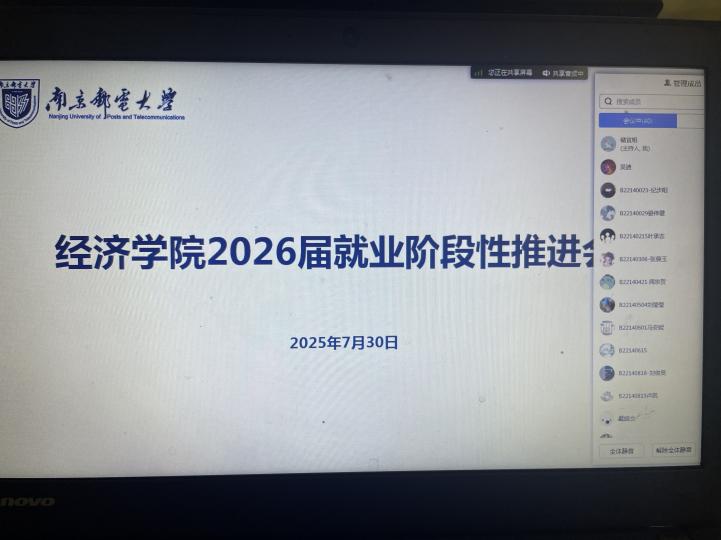 为帮助2026届本科生明晰就业方向,高效筹备秋招事宜,2025年8月5日,经济学院学院通过线上平台召开了2026届本科生就业阶段性推进会暨就业实习安全教育大会。学院党委副书记兼副院长吴迪出席会议,本科生辅导员储宜旭主持会议,学院2026届本科生参会。