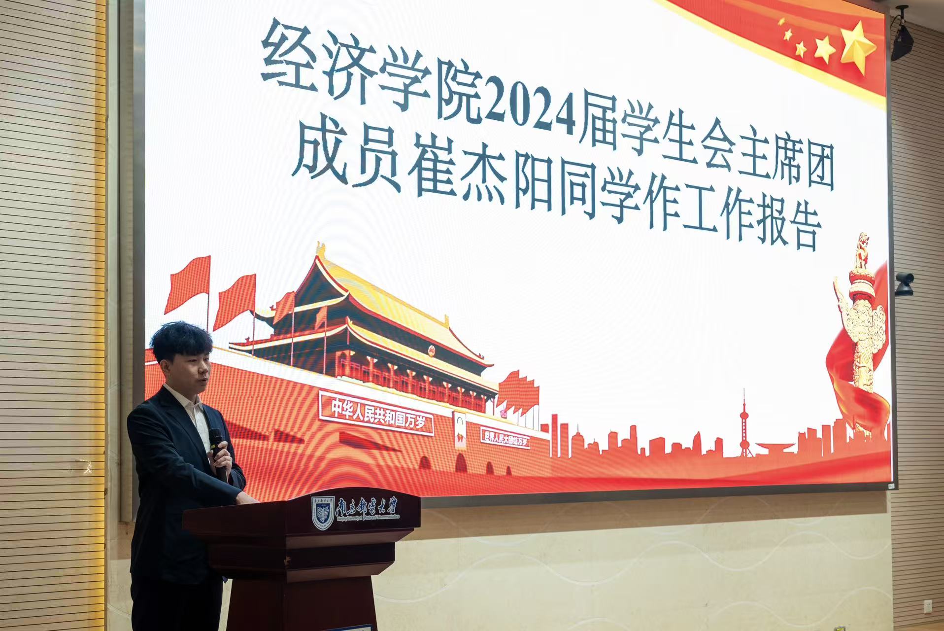 经济学院2024届学生会主席团成员崔杰阳向大会作报告