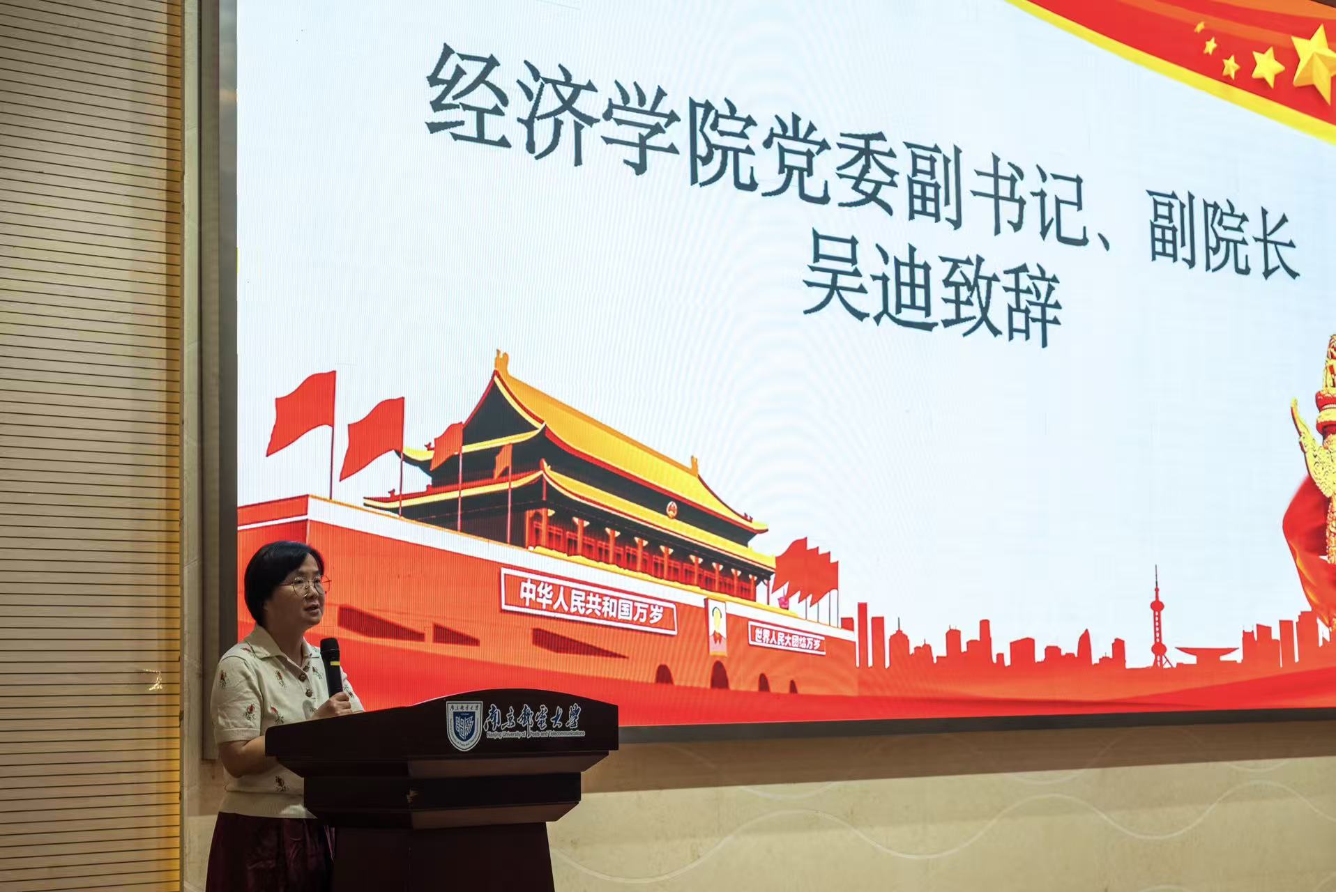 大会伴随着庄严的国歌声,正式拉开了帷幕。吴迪副书记在大会上致辞,她对大会的顺利召开表示热烈的祝贺,并对经院学子展现出的积极向上、奋发有为的精神风貌给予了充分肯定。她指出,学生会是学院与学生之间的桥梁纽带,成员应筑牢理想信念,勇于担当作为,全心全意服务同学,发挥模范带头作用。同时,她希望学生会立足学院实际,以高度的责任感和使命感为学院发展贡献智慧,并鼓励同学们以此次大会为契机,不断成长进步,为学院、学校和国家发展不懈奋斗,彰显新时代青年的担当精神。
