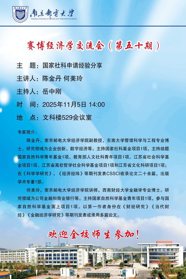 赛博经济学交流会(第五十期)——国家社科基金申请经验分享