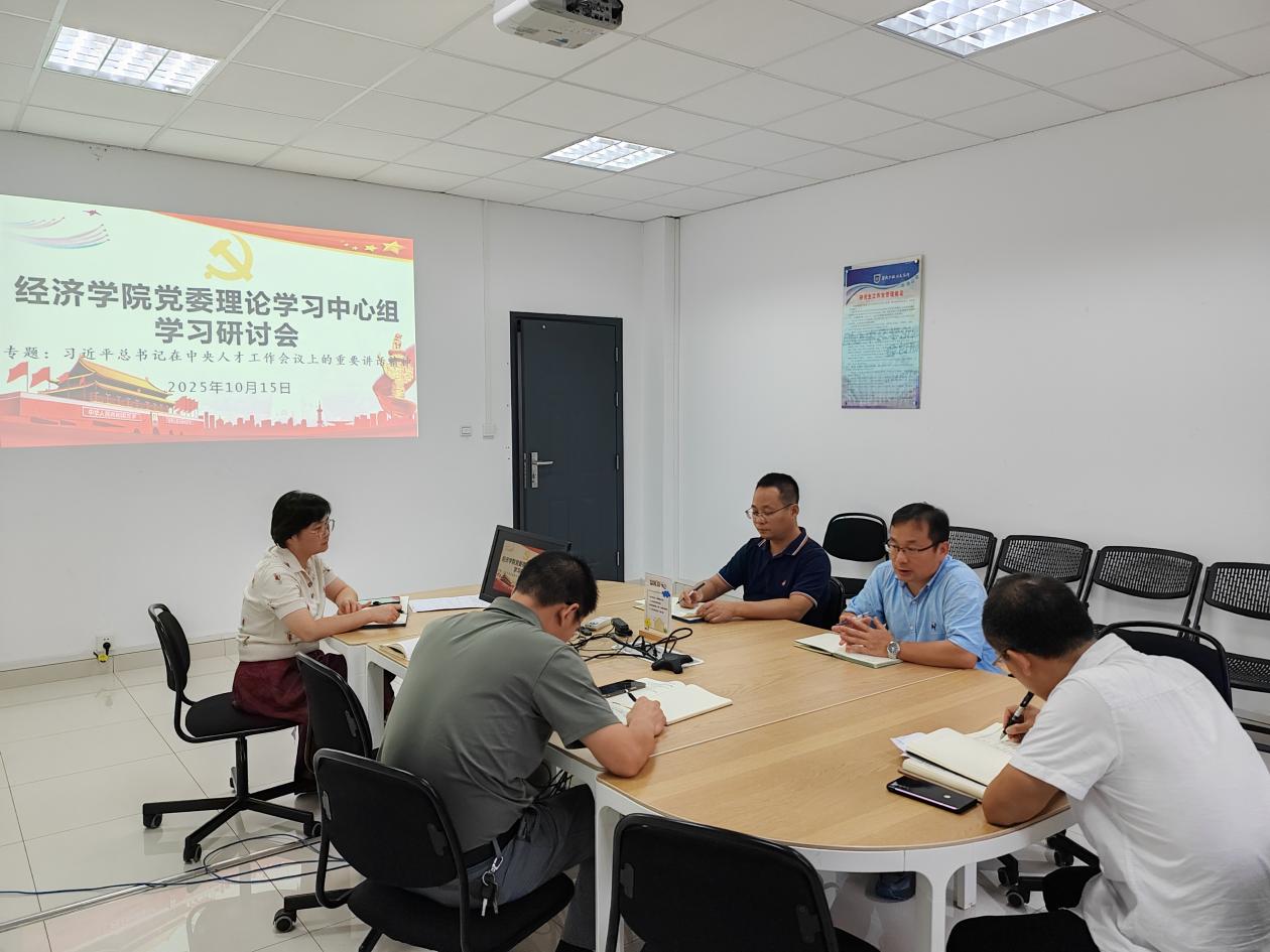 2025年10月15日下午,经济学院党委理论学习中心组在文科楼522会议室专题学习习近平总书记在中央人才工作会议上的重要讲话精神。会议由经济学院党委书记、党委理论学习中心组组长刘挺同志主持,部分中心组成员作重点交流发言。