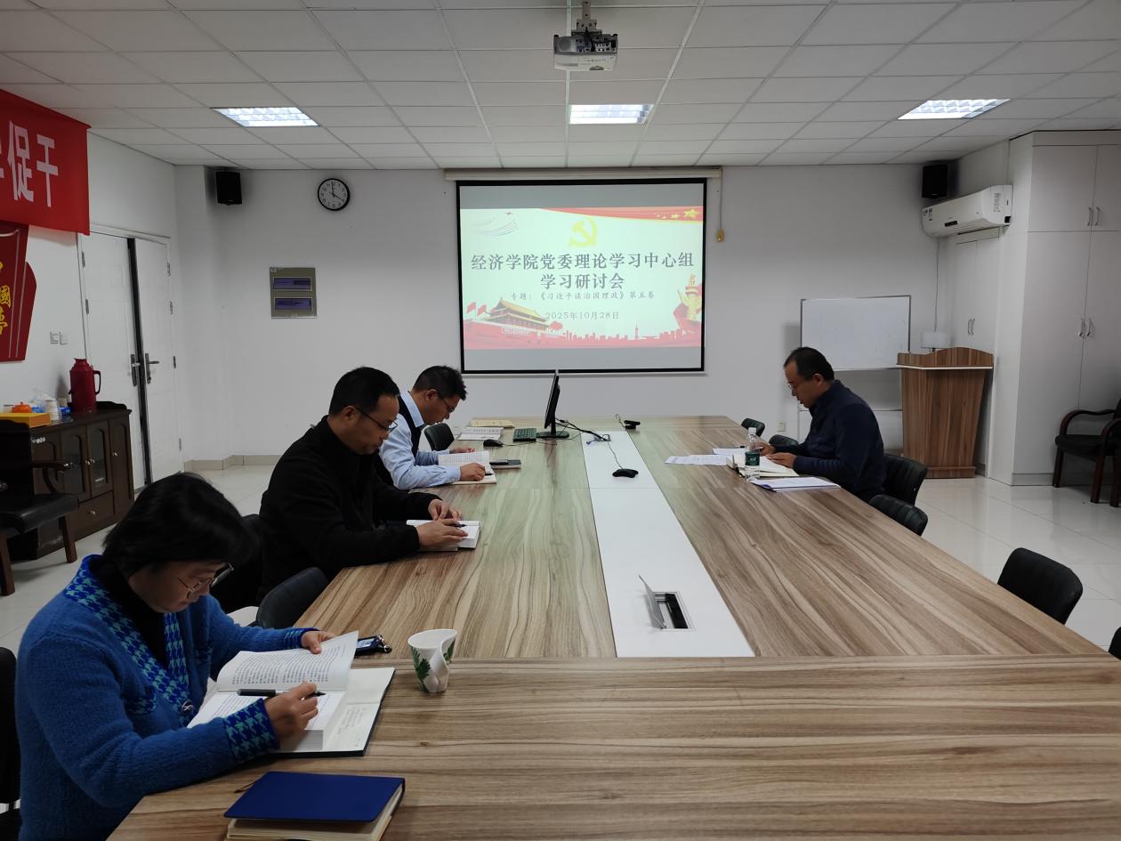 2025年10月28日-29日,经济学院党委理论学习中心组用2个半天在文科楼529会议室专题学习《习近平谈治国理政》第五卷部分章节。会议由经济学院党委书记、党委理论学习中心组组长刘挺同志主持,中心组成员分别原原本本、逐字逐句领学相关专题内容并交流心得体会,部分中心组成员作重点发言。