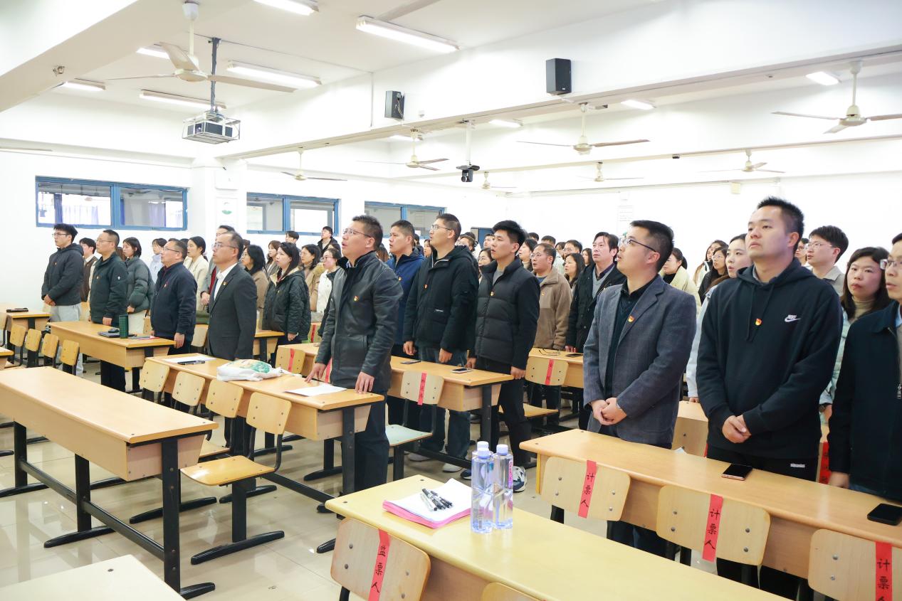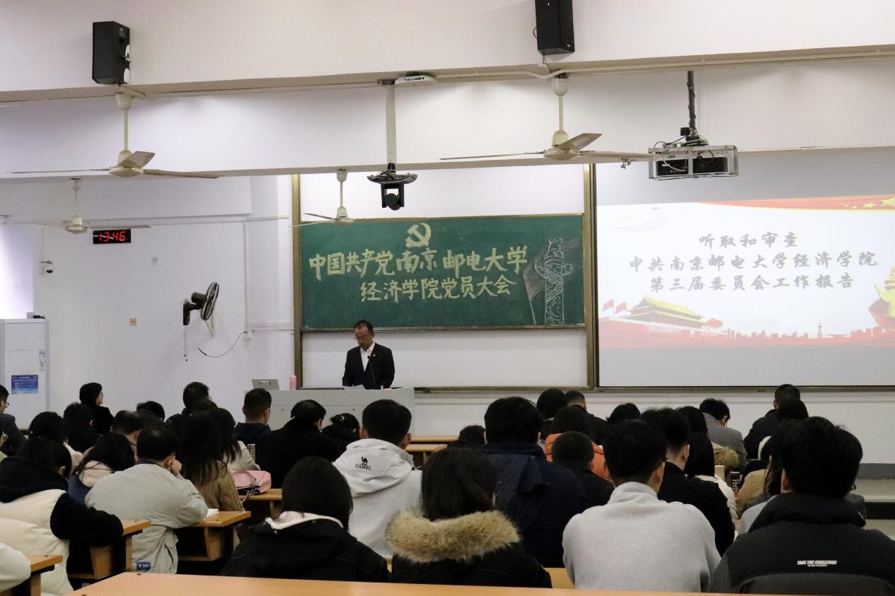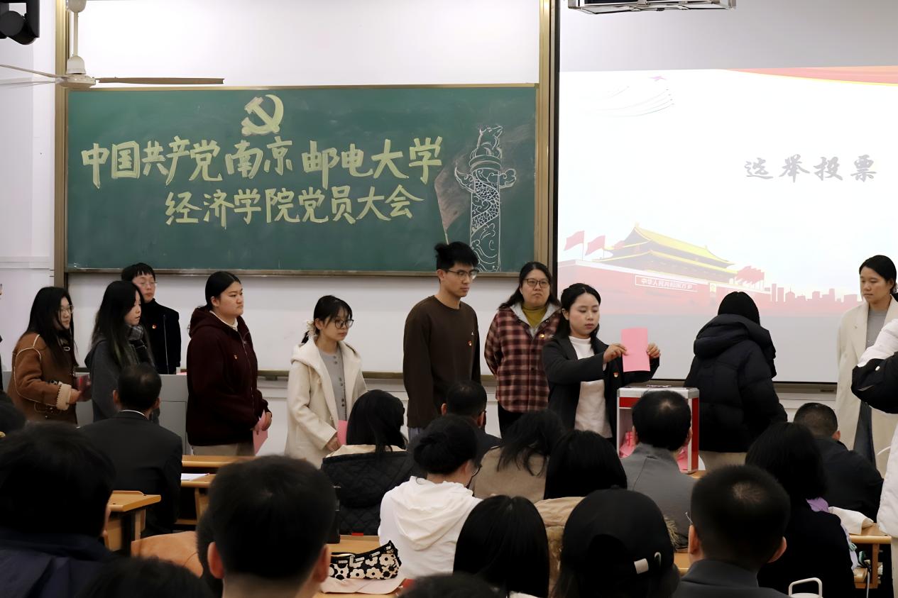 为深入学习贯彻党的二十届四中全会精神,切实加强党组织领导班子建设,不断增强党组织政治功能和组织功能,2025年11月26日下午,经济学院党委在仙林校区教4-313教室召开换届选举党员大会。学院78名师生正式党员出席大会,28名学生预备党员列席会议。大会由学院党委副书记、副院长吴迪同志主持。