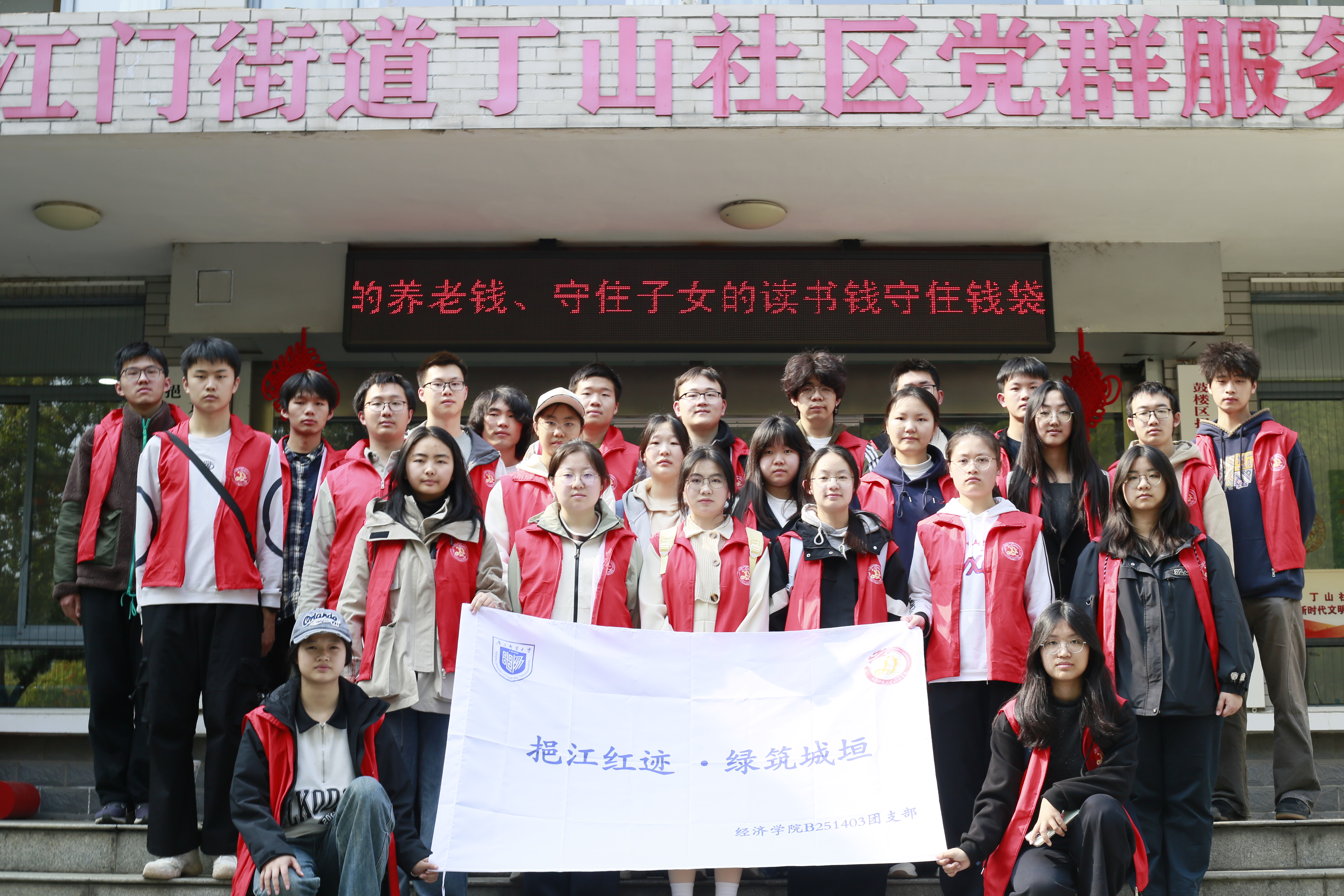 为进一步学习贯彻全国两会精神,引导团员青年在红色寻访中坚定理想信念、在志愿服务中强化责任担当,2026年4月1日下午,经济学院B251403团支部赴南京丁山社区爱国主义教育基地及挹江门一带,开展“挹江红迹·绿筑城垣”主题团日活动。团员青年在追寻红色印记中感悟初心使命,在参与志愿服务中书写青春担当。