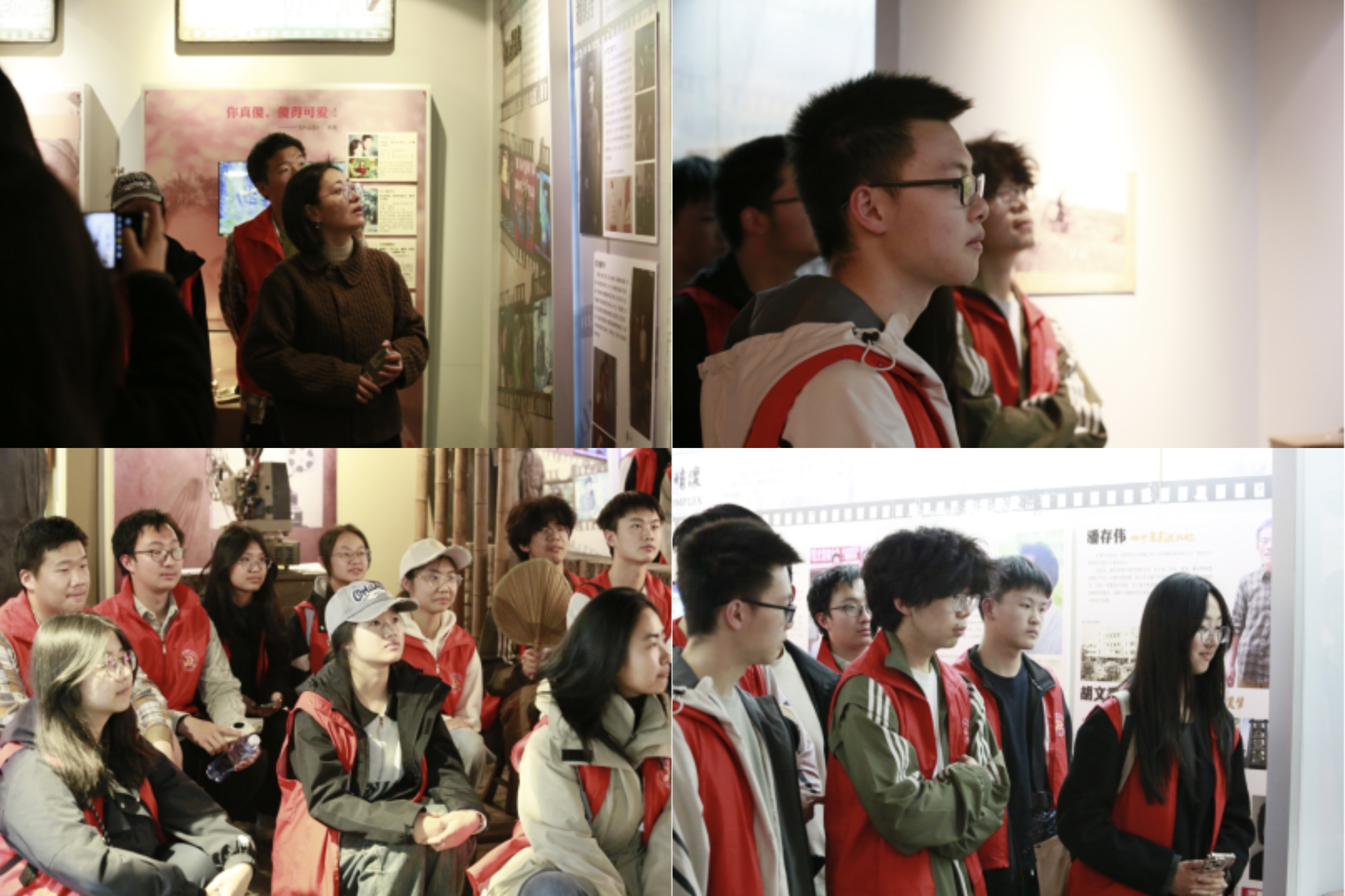 在学院分团委指导下,在团支部书记精心组织下,支部全体团员有序抵达丁山社区爱国主义教育基地。丁山社区依托辖区独具特色的文化资源打造电影文化馆,让城市记忆、红色文脉与群众生活在这里交相辉映。丁山社区党委书记周琴介绍,这里既是多部爱国主义题材影视作品的重要取景地,也留下了不少现实题材影片的创作足迹。2017年,《我不是药神》剧组曾在社区取景拍摄三天,导演文牧野和主演徐峥留下亲笔签名;《七月与安生》也曾在此定格光影。展柜中泛黄的剧照、签名以及红色经典手稿静静陈列,电影与红歌相映成辉,艺术与现实彼此映照。团员们边听边看、边思边悟,更加真切地感受到,文化不是抽象的符号,而是可触可感的家国记忆;传承不是空泛的口号,而是需要一代代青年接续守护的精神火种。