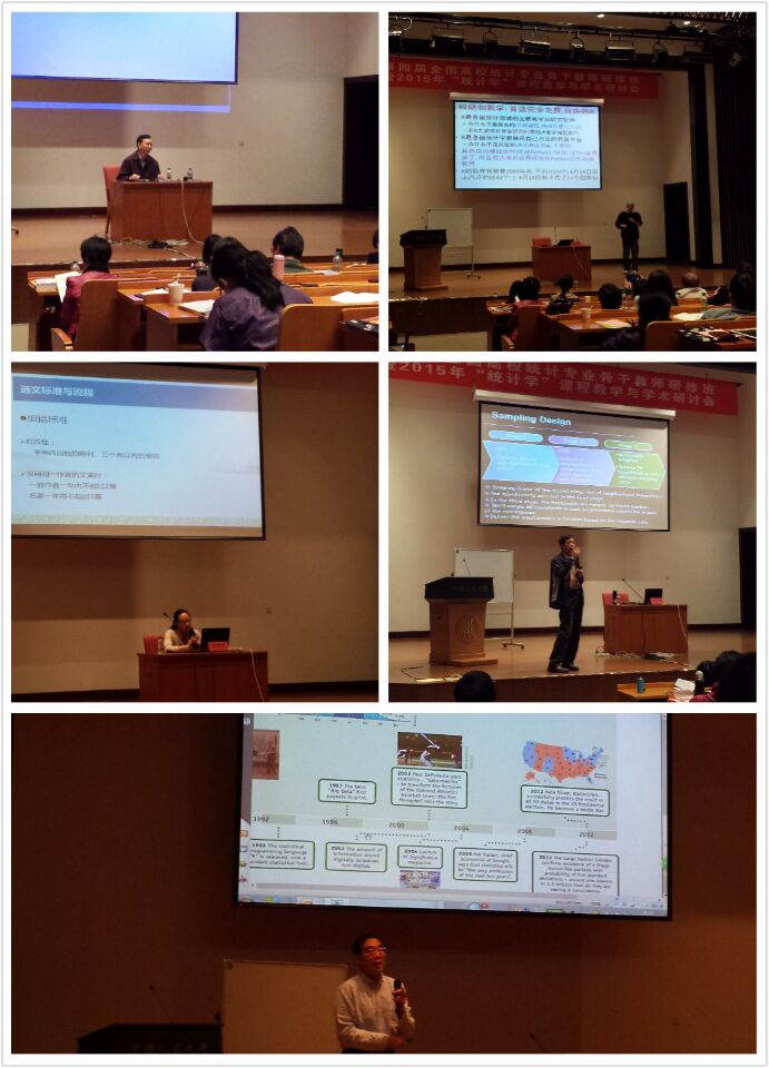 2015年4月18—19日, “第四届全国高校统计专业骨干教师研修班暨2015年‘统计学’课程教学与学术研讨会”在中国人民大学举办。国内统计教学研究知名专家袁卫教授、吴喜之教授、金勇进教授等分别作“大数据时代的统计教学”、“统计作为数据科学应具备的思维和基础”、“统计调查设计教学案例”、“统计教学与软件应用”学术讲座。来自国内高校的一百余名教师参加会议,就统计学教学的思想、方法、课程教学体系,以及统计学理论发展等进行深入交流和研讨。全国应用统计硕士专业学位教指委秘书长、中国人民大学统计学院院长赵彦云就与会教师感兴趣的2015年应用统计专业硕士学位授权点合格评估工作做了简要介绍,并回答了大家的现场提问。