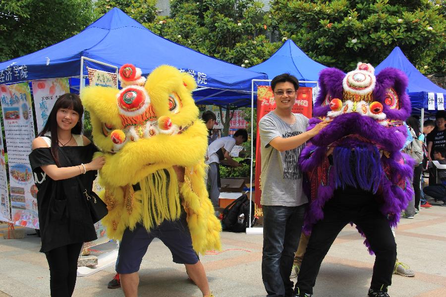 5月27日,经济学院大学生龙狮团于南二广场开展了别开生面的传统龙狮表演及专题展览,本次活动从前期宣传到外场表演,一直吸引了一大批同学的目光,活动当天掌声雷动,现场气氛活跃。本次专题展览以图片、实物和视频资料为主,分舞龙和舞狮两部分,包括龙舞、醒狮舞等现场演示和舞龙、舞狮道具等实物展示,力求立体展示传统龙狮文化的方方面面。
