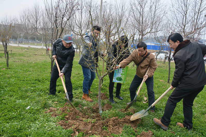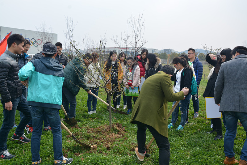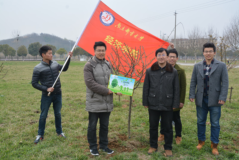 为迎接我国第38个植树节, 3月11日上午,经济学院党委、关工委、2012级毕业班学生党支部以及2015级学生党支部联合举办经济学院第二届“百年树人、把根留住”师生共植“学子林”活动。毕业班党员、2015级部分入党积极分子、学院团学组织代表来到南京邮电大学仙林校区体育馆旁的海棠园,亲手种下海棠树。经济学院党委书记储成祥、党委副书记董军以及经济学院关工委委员蒋华园老师,2012级学生党支部书记王俊华、2013级学生党支部书记于茜、2014级学生党支部书记吴波老师、2015级学生党支部书记王超老师共同参加了植树活动,此次活动由王俊华老师主持。