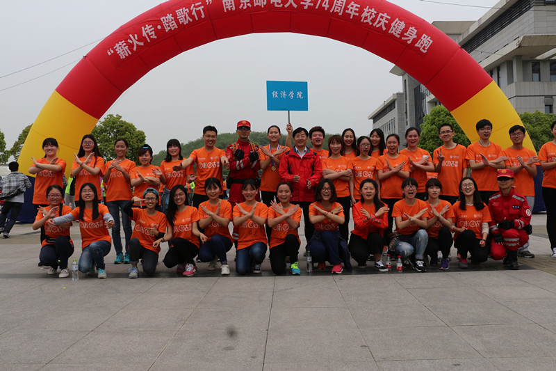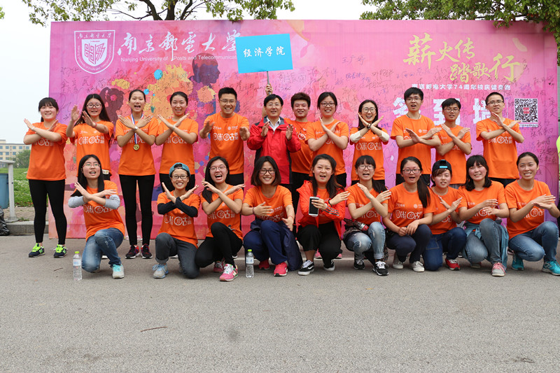 上午9点,参加校庆活动的经济学院师生齐聚仙林校区图书馆前。临时搭建的舞台上,同学们载歌载舞,共贺母校74岁生日。歌舞表演《海芋恋》唯美动人,展现了当代大学生积极向上的精神风貌,配乐诗朗诵《扬风采 展未来》饱含情感,围绕南邮的历史发展娓娓道来,跆拳道表演铿锵有力,瑜伽展示柔美舒展,拉丁舞奔放热烈,民乐演奏《战马奔腾》气势磅礴,金龙欢舞,雄狮展威,啦啦操的互动更是点爆全场热情。9点45分,接力跑最后一站学生联队的同学们从站点出发,各学院的院旗簇拥着学校的校旗,缓缓跑入仙林校园。在师生的欢呼声中,校旗、院旗、职工旗、校友旗依次登上舞台,旗帜在旗手们的手中猎猎起舞,经久不息的喊声盘桓在校园上空,掀起校庆活动高潮。