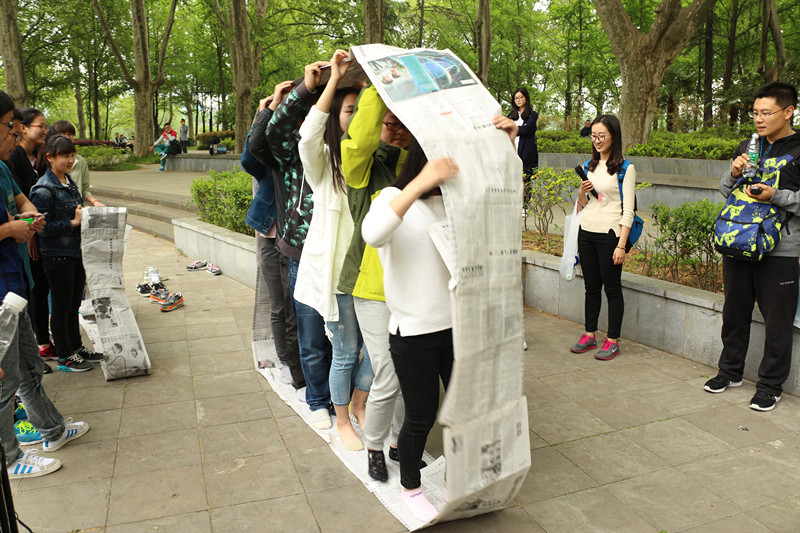 本次素质拓展活动以倡导学生“走下网络、走出宿舍、走向操场”为目的,采取团体竞赛的形式,分为五个游戏:报纸坦克,你画我猜,板羽球比赛,A4迷宫,指压板跳绳。
