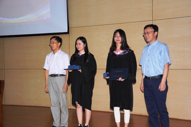 副院长张振亮宣读了关于经济学院授予2016届本科毕业生毕业的决定。院长黄宝凤宣读了校、院级优秀毕业生表彰决定。领导们为优秀毕业生颁发了荣誉证书。