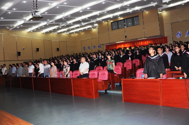 伴随着庄严的国歌声,毕业典礼正式拉开帷幕。首先,由校党委副书记朱永平致辞,他向毕业生们致以最衷心的祝贺和最美好的祝福,向为他们的成长倾注了无数心血的父母、老师致以崇高的敬意,表示衷心的感谢。他肯定了经济学院近几年的飞速发展,还和毕业生们分享了这一届学生取得的骄人成绩,并嘱托毕业生们要明确目标,坚守理想,牢记母校培养之恩和老师的谆谆教诲,为社会多做贡献,成为母校的骄傲。