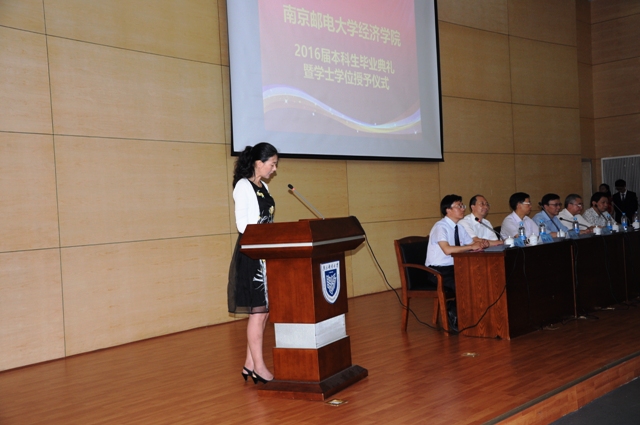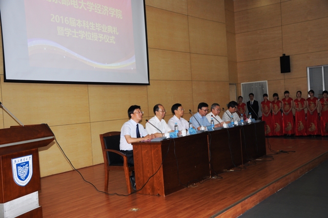 昔我来思,桃李累累;今我往矣,杨柳依依。六月是毕业的季节,也是收获的季节。6月22日下午2点,经济学院2016届本科毕业典礼在图书馆四楼报告厅隆重举行。校党委常委、党委副书记、纪委书记朱永平,院长黄宝凤,院党委书记储成祥,副院长黄一鸣、张振亮,党委副书记董军出席了本次典礼。参加本次典礼的还有教师代表经济统计系主任黄犚老师,辅导员王俊华老师,244名毕业生以及部分学生家长,共叙师生情,共话离别意。毕业典礼由院党委副书记董军主持。
