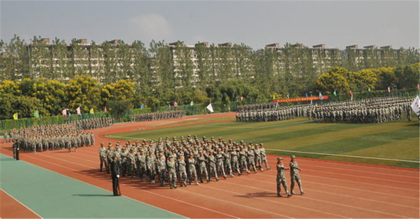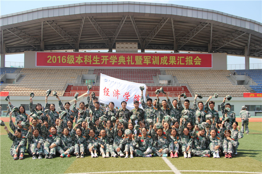 开学典礼暨军训成果总结表彰汇报会在庄严的国歌声中开始。校长杨震在校人武部负责人的陪同下检阅了各个军训方队的学生。“同学们好”、“校长好”、“同学们辛苦了”、“为人民服务”的声音此起彼伏,回响在主体育场上空。本次检阅共16个学院的新生参加。来自经济学院的29、30方阵的同学们依次喊着嘹亮的口号,踏着整齐的步伐,昂首阔步、精神抖擞地依次走过主席台前。他们坚定有力的步伐、整齐划一的动作和威武飒爽的英姿,赢得了与会领导的阵阵掌声,充分展现了经院学子的朝气与活力。本次军训期间,纵使艳阳高照,疲惫不堪,我们依旧是昂首挺胸的经院方阵,依然圆满完成军训任务,在锻炼身心、磨炼意志的同时,更为经济学院增光添彩。在汇报表演环节,女子格斗铿锵有力,展现南邮女生巾帼不让须眉的气魄;国防生表演的匕首操一气呵成,整齐划一的动作是国防生刻苦训练的最好展示;拉歌表演中,男生方阵和女生方阵互不示弱,街舞、武术、歌舞纷纷上阵,侧手翻、一字马迎来阵阵喝彩,表现了南邮学子的多才多艺;战术表演演示了侦察、破袭、匍匐、夺取阵地等环节的战术要领,最终夺取阵地后,响彻云霄的“犯我中华,虽远必诛”,恰是青年学子对纪念九一八事变85周年的回应。新生们充分展现了新时代大学生积极向上的精神风貌和南邮学子蓬勃奋发的朝气与活力。