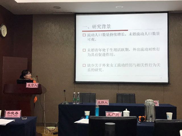 南京邮电大学副校长李建宇教授及中国人口学会副会长、秘书长姜卫平首先致词。随后,来自各大高校及研究院所的专家学者依次上台分享自己在人口领域的研究成果。我院尹勤教授、宗占红副教授、雷敏老师,以及应用统计专硕研究生、经济统计学本科生等多名师生受邀参加本次学术研讨会。会议上,宗占红副教授以“未婚外来女工流动经历和性行为分析”为主题、尹勤教授指导的经济统计学专业学生徐千里以“流动人口住院医疗服务利用现状及影响因素分析”为主题分别作了会议发言。