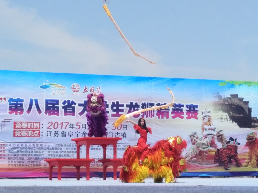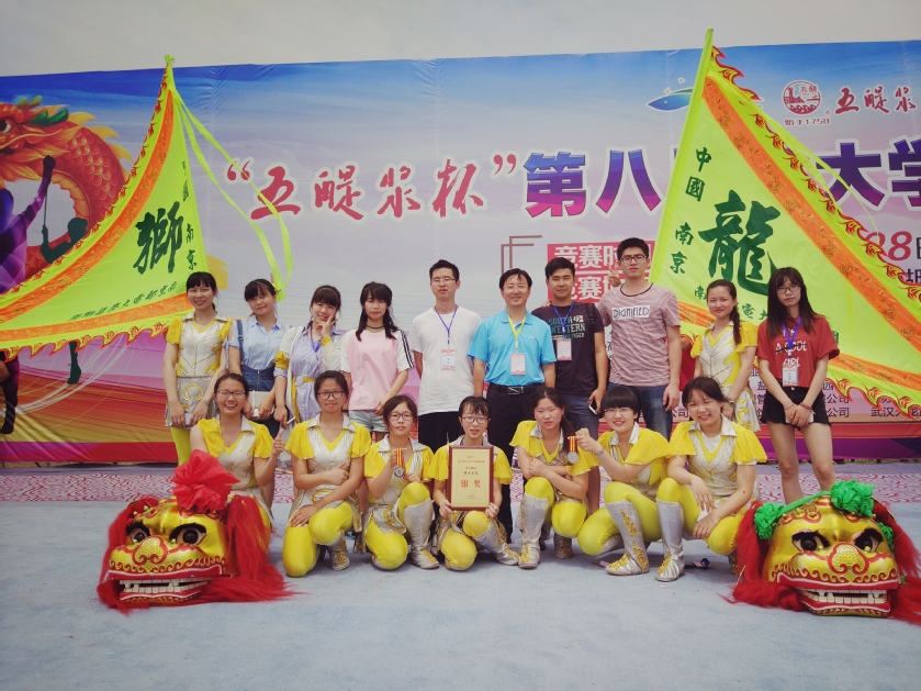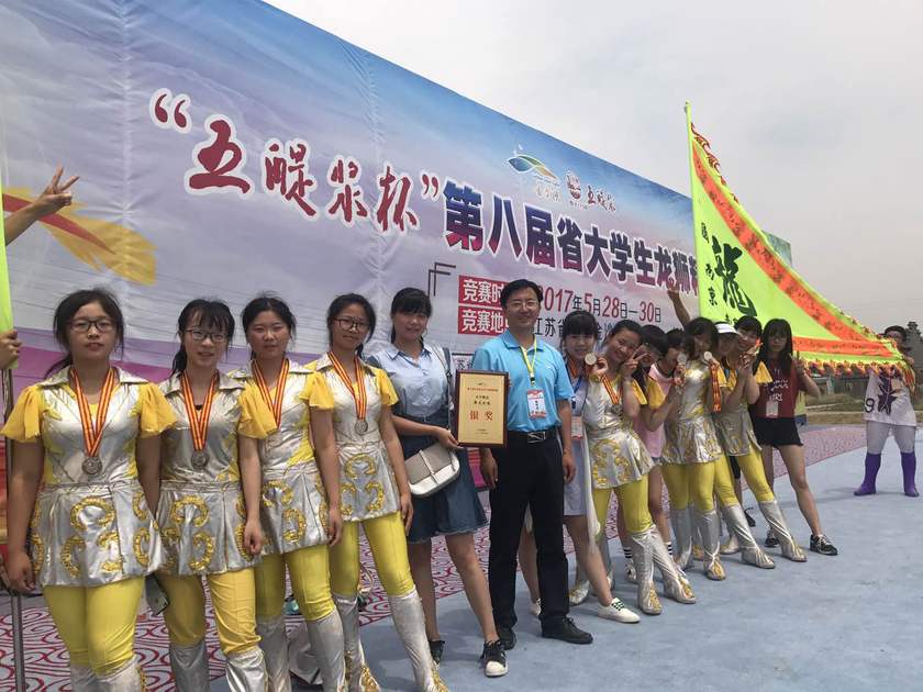 2017年5月28日至30日,由江苏省体育总局社会体育中心、江苏省学生体协高校工作委员会、江苏省龙狮运动协会、阜宁县人民政府联合主办的“五醍浆杯”第八届省大学生龙狮精英赛在盐城市阜宁县喻口古镇隆重举行。大赛共有来自全省11所高校的14支龙狮代表队,200多名运动员同台竞技。校大学生龙狮团经过顽强拼搏,在女子传统舞龙比赛项目中以8.61分中夺得冠军,并以总分第二获得全能银奖,这是我校大学生龙狮团首次在女子舞龙项目中取得突破。