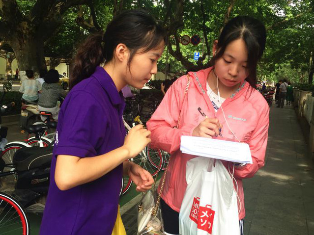 2017年7月7日早8:00,社会实践小组成员在南京邮电大学仙林南门集合,随后集体乘坐地铁前往南京市玄武区开展第二日的调查实践。玄武区实践的调查问卷主要在江宁织造博物馆、南京市图书馆、总统府及新街口等周边地区进行发放。在此期间共发放问卷150份,回收有效问卷145份,许多热心的参观游客参与到我们的调查中来并与我们进行了相关的沟通交流,且许多热心的受访者为我们提出了符合共享单车长久发展的优质建议。
